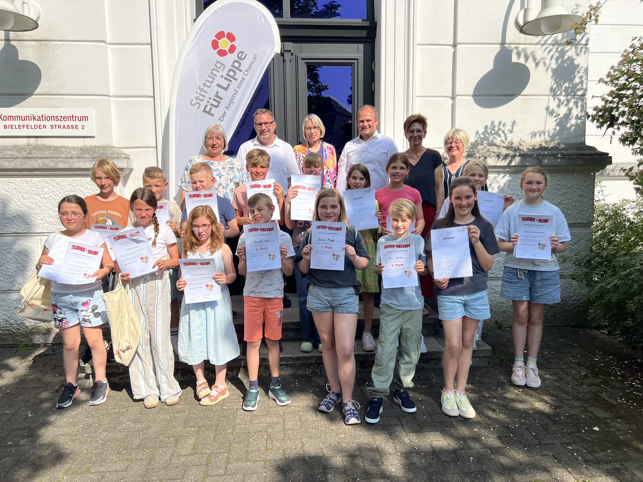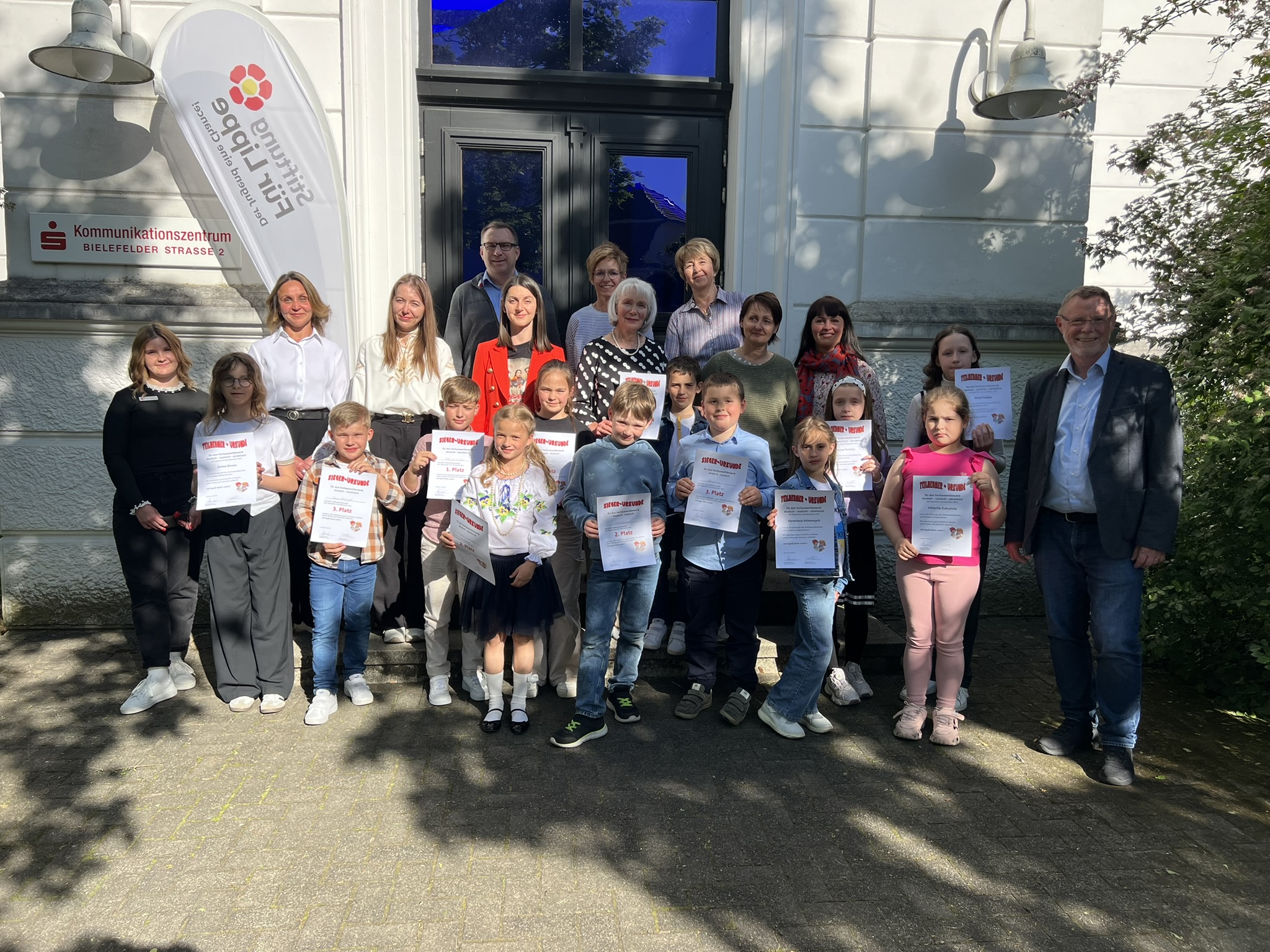 Die Stiftung unterstützt jedes Jahr den Vorlesewettbewerb der lippischen Grundschulen. Neben den Büchergutscheinen für die Schulbüchereien der Grundschulen im Wert von 100 Euro erhalten die Finalteilnehmer*innen jeweils bis zu drei Karten für das Kinder- und Literaturfestival „Wortspielerei“ in Detmold. Im Jahr 2024 förderte die Stiftung „Für Lippe“ erneut den Vorlesewettbewerb Türkisch-Deutsch – ein wichtiges Zeichen für Mehrsprachigkeit und kulturelle Vielfalt. Erstmals förderte die Stiftung 2025 den neu ins Leben gerufenen Vorlesewettbewerb Russisch-Ukrainisch-Deutsch.